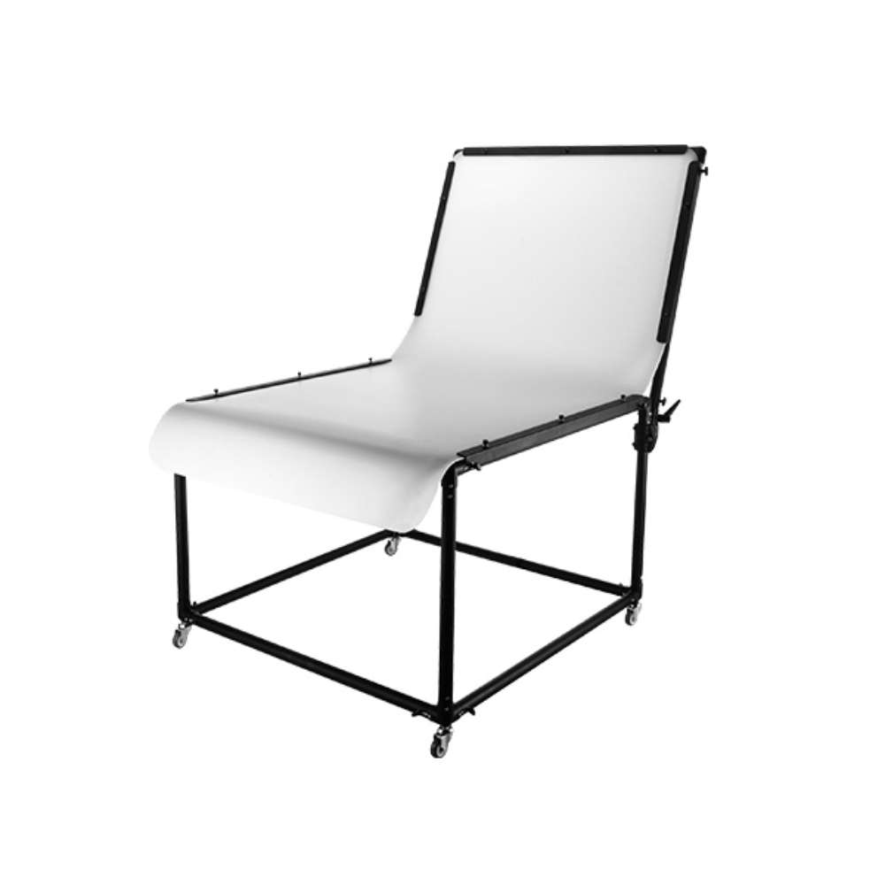 Этот профессиональный съемочный стол предназначен для средних и крупных установок, позволяя освещать неотражающее полупрозрачное оргстекло сверху, снизу, сзади или вокруг объекта для драматическое или яркое освещение с точным управлением.