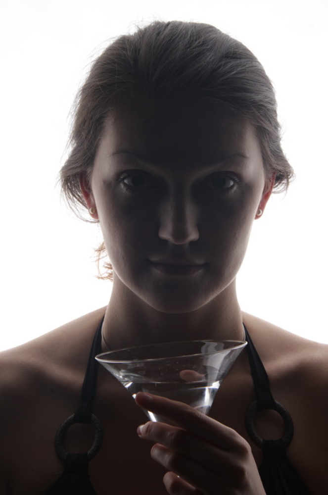 Фотография 8. Задний безымянный. Лицо не освещено совсем. Световой поток освещает волосы и фигуру и «отрывает» модель от фона.