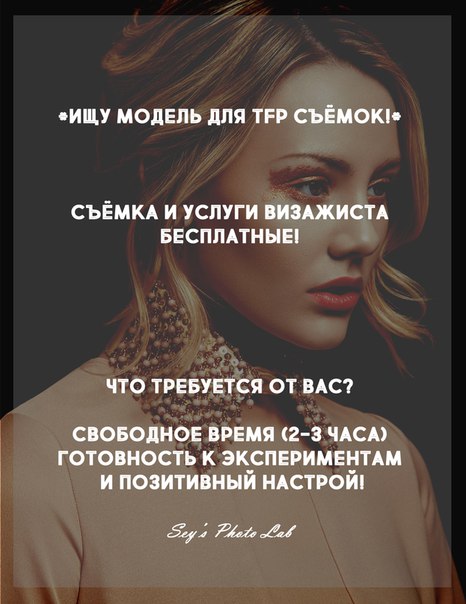 Уже сказал выше, что для вас, коллеги, условия tfp, это самый оптимальный способ привлечь моделей для ваших съёмок.