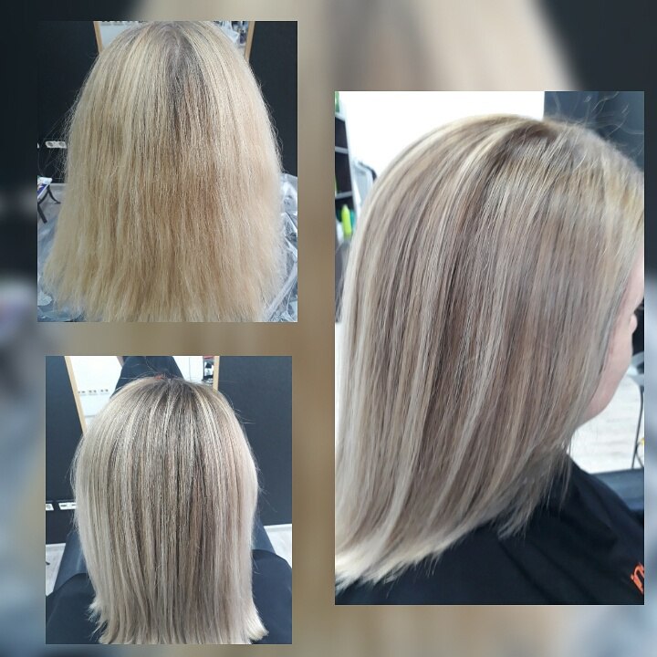 - пастельное тонирование 1,5% оттенком натуральный блондин, практически, не дал результата — слабенький оттенок + хороший блеск
