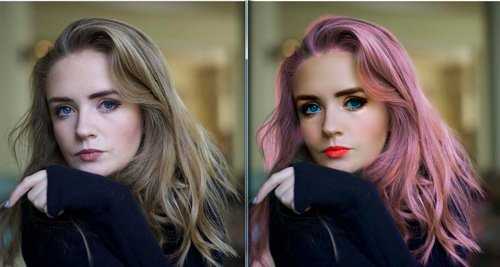 Кроме того, не проблемой будет сделать пластику и поменять даже цвет волос на фото. Кстати, о том, как это сделать в фотошопе, я тоже уже рассказывал. Придам голове девушки фиолетовый оттенок, не так давно полюбившийся молодым девушкам и находящийся в вечном тренде у всех бабушек.