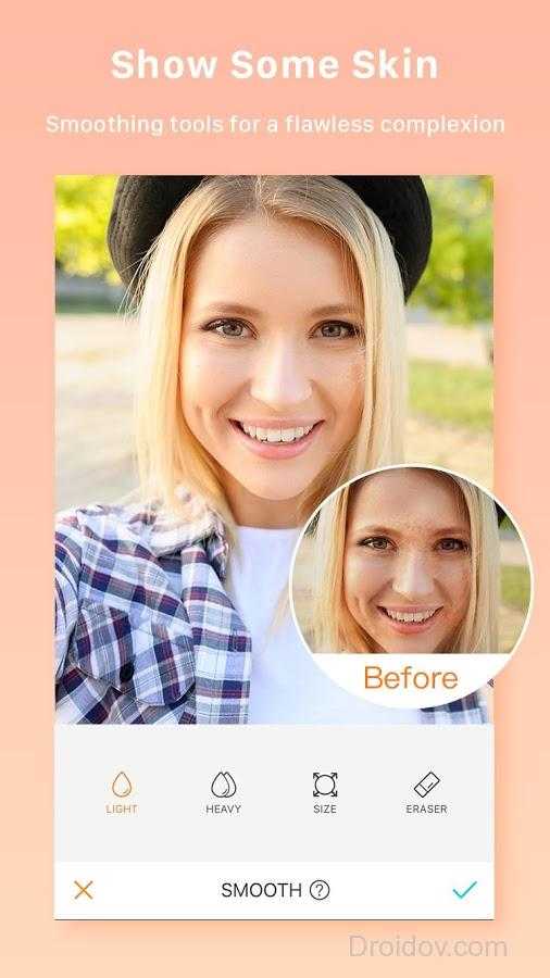 Что можно сделать с их помощью? Удалить пятнышки и прыщи, разгладить морщины, освежить кожу, нанести легкий румянец, изменить цвет глаз, сделать их больше, убрать красноту, отбелить зубы, изменить цвет помады, увеличить ресницы и пр. Короче добавить немного гламура 🙂 Почему бы не добавить немного красоты прямо сейчас?