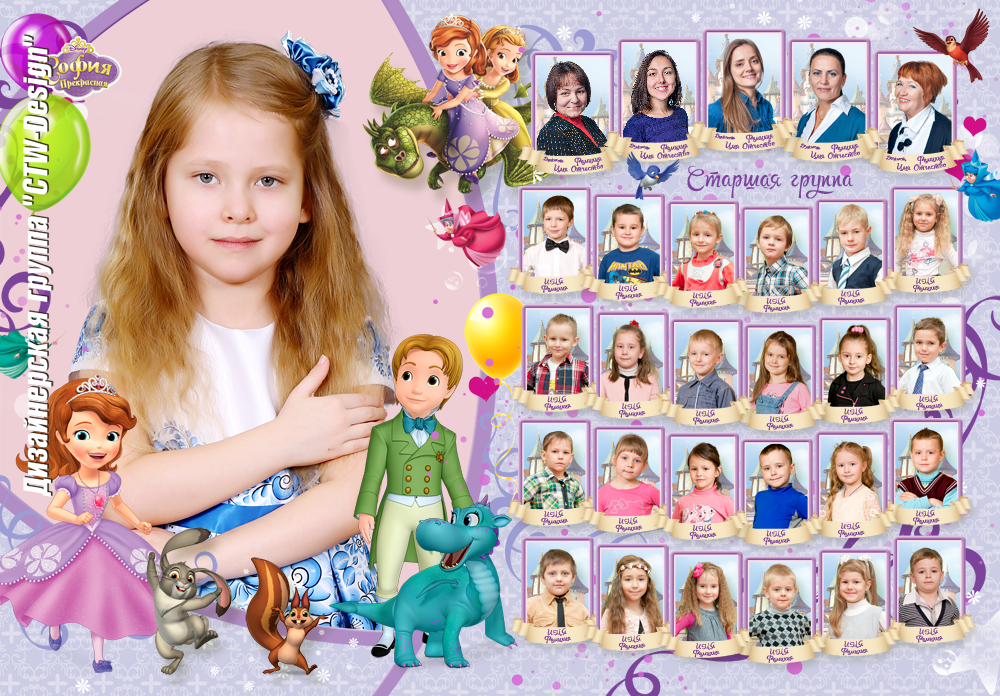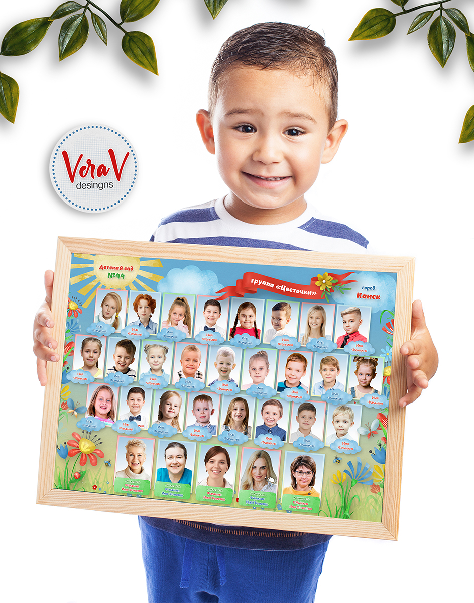 На фотовиньетке (фото виньетке), под каждым портретом, размещаются соответствующие имена и фамилии, а так же, по желанию, другая информация (например, дата рождения, род занятий и другое).
