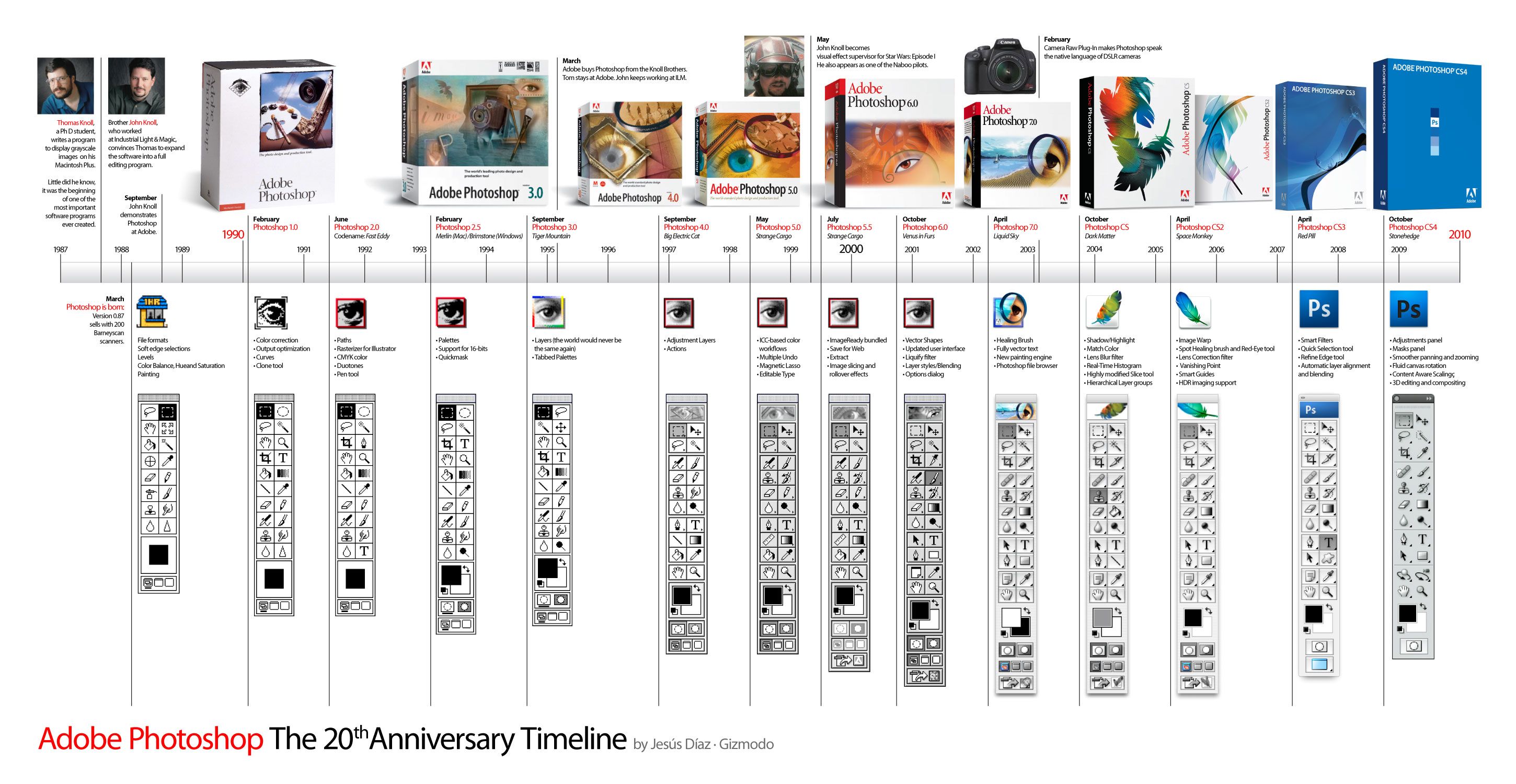ΠΠΈΠΆΠ΅ ΠΏΡΠ΅Π΄ΡΡΠ°Π²Π»Π΅Π½Ρ Π²ΡΠ΅ Π²Π΅ΡΡΠΈΠΈ Adobe Photoshop, Π²ΡΠΏΡΡΠ΅Π½Π½ΡΠ΅ Π΄ΠΎ ΡΠΈΡ ΠΏΠΎΡ, Ρ ΠΊΡΠ°ΡΠΊΠΈΠΌ ΠΏΠΎΡΡΠ½Π΅Π½ΠΈΠ΅ΠΌ: