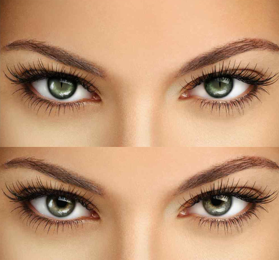 Когда корректирующий слой отключен, вы увидите оригинальный цвет глаз модели. Чтобы вернуть результат, нажмите на значок видимости еще раз. Вы можете увидеть результаты, которых вы можете достичь ниже: