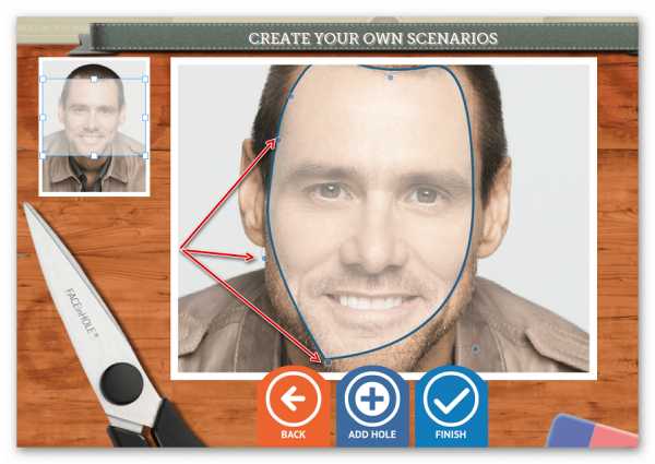 - Вырезаем область, куда будет вставлено новое лицо, с помощью специальных маркеров.