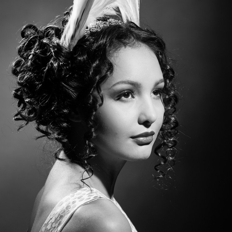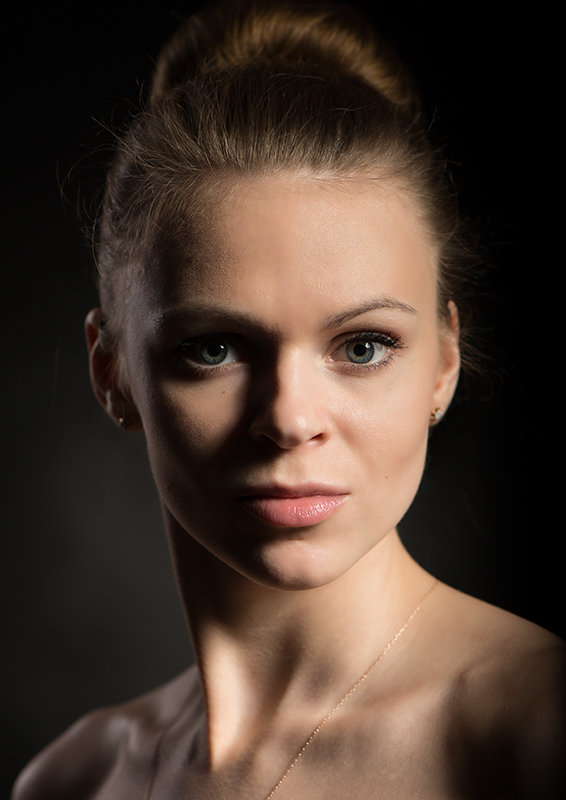 Тени здесь очень плавные, с большим количеством градиентов. Мы потеряли тональность в ее волосах, но это связано с направлением вспышки (над головой), а не с качеством.