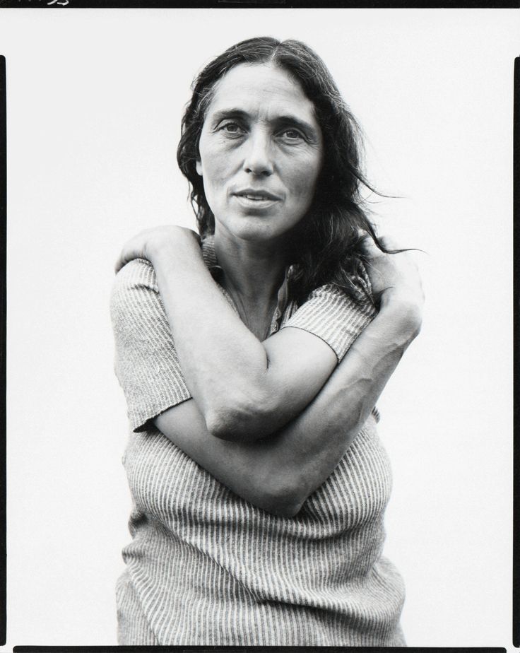 Он фотографировал большой камерой с обзором 8х10, что в то время уже было своего рода анахронизмом. Это камера, которую мы больше ассоциировали с Надаром в 19 веке. Он фотографировал людей на белом фоне, чтобы не было никакой контекстуализации, никакой среды, в которой мы могли бы найти или разместить их. Он делал это раньше, но в 1969 году превратил это в фетиш. Он показывал черную рамку, края своего негатива. Он очень радикально противопоставил белый фон черному краю пленки. Это делало снимки очень жесткими и агрессивными. Кроме того, тела будут разрезаны, ноги отрезаны по щиколотку, головы отрезаны по макушке. Он не использовал лестное освещение светотенью. И он был очарован возрастом. У него было это чудесное выражение, называемое лавиной. Он описал бы, как возраст обрушивается на человека, как лавина, накрывая его. Поэтому Аведон очень тщательно фотографировал складки кожи, морщины и родинки, используя очень резкий объектив. И это тоже было очень радикально. Традиционно портретная живопись идеализирует свой объект и дает некоторое представление об их одежде и окружении.