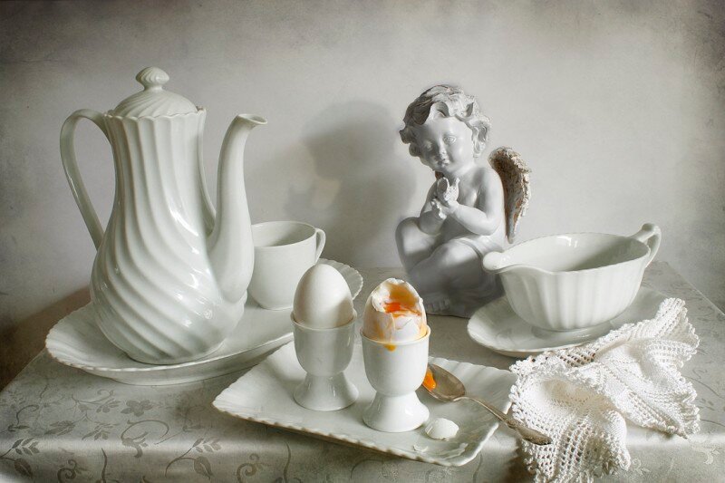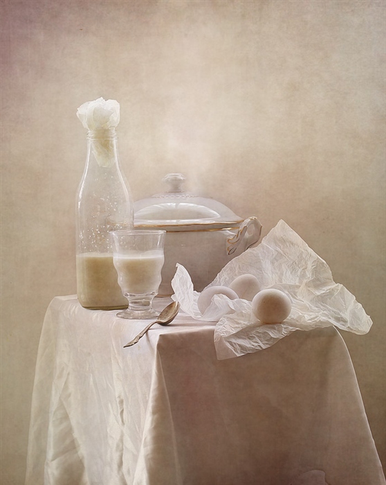 Хорошее освещение значительно помогает при подготовке к рисованию белого объекта. Я стараюсь использовать только естественный дневной свет, так как я хочу видеть тонкие цветовые оттенки, отраженные в белом. При моей подготовке яркий направленный свет идет слева.
