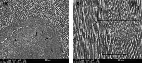 Π ΠΈΡ. 147. Π‘ΠΠ-ΡΠΎΡΠΎΠ³ΡΠ°ΡΠΈΠΈ ΠΌΠΈΠΊΡΠΎΡΡΡΡΠΊΡΡΡΡ ΠΎΠ±ΡΠ°Π·ΡΠ° ΠΈΠ· ΡΠΏΠ»Π°Π²Π° Inconel 718, ΠΏΠΎΠ»ΡΡΠ΅Π½Π½ΠΎΠ³ΠΎ ΠΌΠ΅ΡΠΎΠ΄ΠΎΠΌ ΡΠ΅Π»Π΅ΠΊΡΠΈΠ²Π½ΠΎΠ³ΠΎ Π»Π°Π·Π΅ΡΠ½ΠΎΠ³ΠΎ ΠΏΠ»Π°Π²Π»Π΅Π½ΠΈΡ: Π°) Π³ΠΎΡΠΈΠ·ΠΎΠ½ΡΠ°Π»ΡΠ½ΠΎΠ΅ ΡΠ΅ΡΠ΅Π½ΠΈΠ΅, Π±) Π²Π΅ΡΡΠΈΠΊΠ°Π»ΡΠ½ΠΎΠ΅ ΡΠ΅ΡΠ΅Π½ΠΈΠ΅