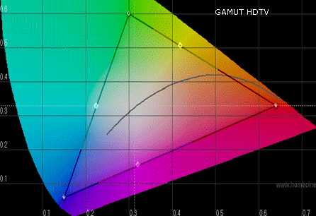 Конкретная область цветового охвата обычно имеет вид многоугольника, углы которого образованы точками основных, или первичных, цветов. Внутренняя область описывает все цвета, которые способно воспроизвести данное устройство.