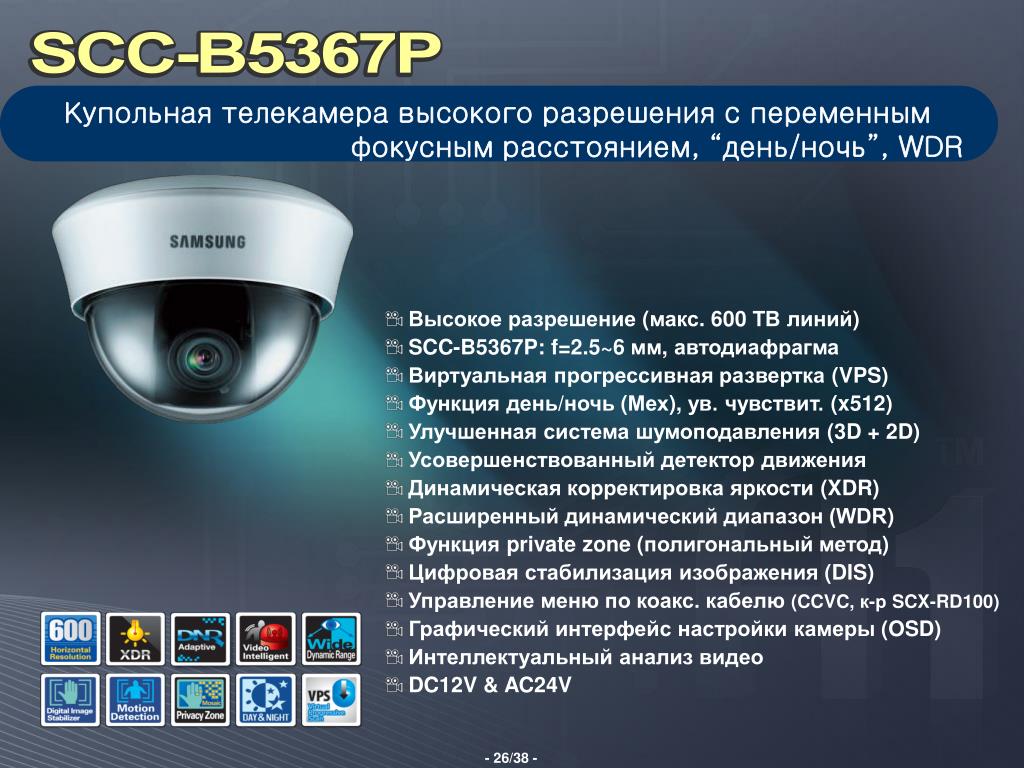 Производитель описывает модель как цветную видеокамеру, предназначенную для работы в составе комплекса видеонаблюдения и непрерывной трансляции видеоизображения с охраняемой зоны на системы отображения, записи, хранения и воспроизведения видеоизображения. Производитель оснастил свою камеру аудиовходом и аудивыходом для подключения дополнительного звукового оборудования. В модели заявлен разъем DI/DO для приема/отправки и обмена цифровыми сигналами с внешними устройствами.