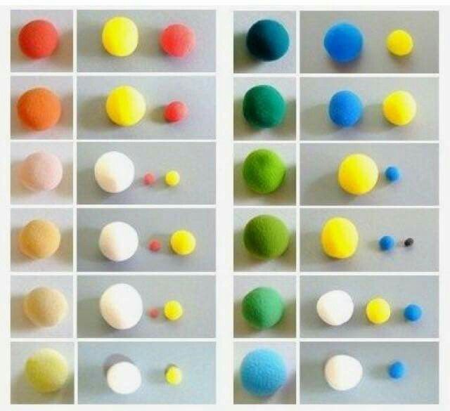 Когда вы будете переминать эти цвета в однородную массу, то приблизительно уже будет видно, какой цвет получается.