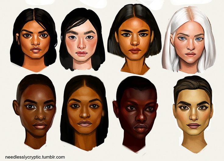 - При рисовании для каждого человека используется более одного тона кожи, поэтому всегда следует делать несколько вариаций, чтобы заполнить все детали.