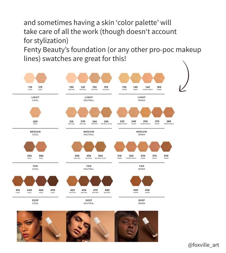 Теперь, когда вы определились с основным тоном кожи, вам следует подумать о создании семейства телесных тонов.