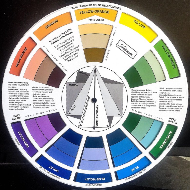 Данный круг — это основной инструмент для комбинирования цветов. Он спроектирован так, чтобы любые, выбранные вами цвета хорошо смотрелись вместе. Осталось научиться им пользоваться.