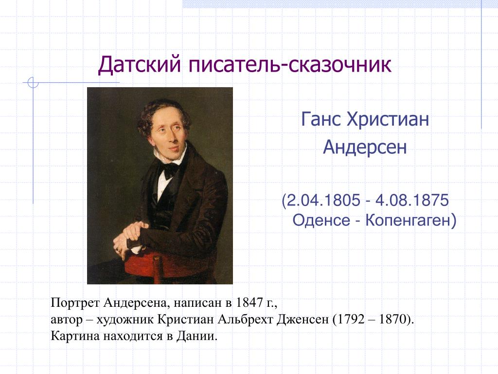 Датский сказочник: Датский писатель, сказочник, 8 (восемь) букв