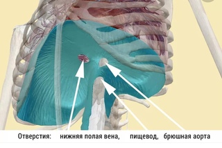 Диафрагма, тонкая плоская мышца, находится прямо под легкими.