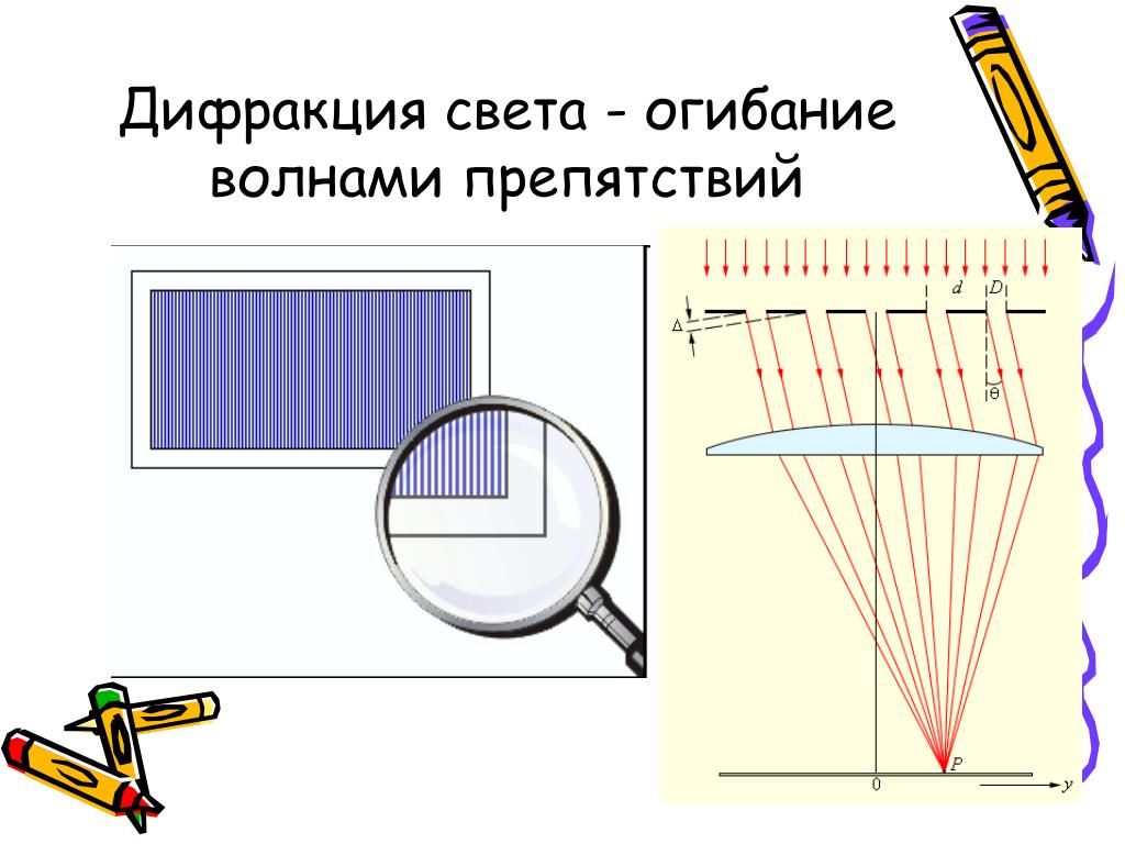 Встречая на своем пути препятствия, световые волны могут отклоняться от прямолинейного направления распространения в область геометрической тени. Любые отклонения при распространении волн от законов геометрической оптики называются