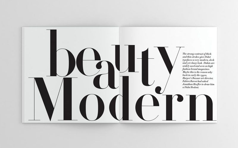 Этот шрифт был первоначально переработан в 1991 году, чтобы стать частью нового журнала Harper’s Bazaar, имевшего полный успех, став важной вехой в издательском деле о моде. Шрифт Didot также появился вместе с логотипом глаза CBS, Apple, Adobe и совсем недавно в новом дизайне логотипа ZARA. также появились в Vogue и некоторые работы дизайнера Louis Vuitton.