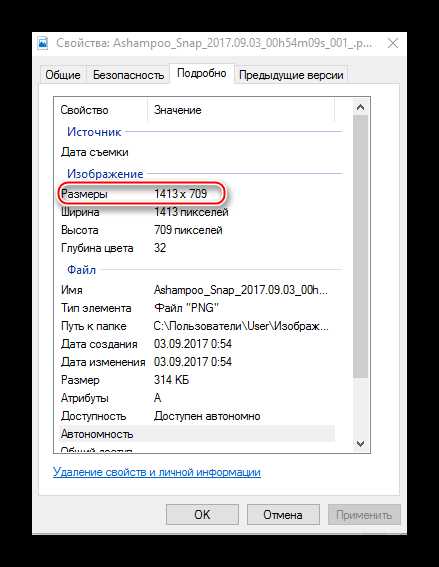- Чтобы узнать размеры изображения, нажмите на него правой кнопкой мыши и перейдите в «Свойства», а там в раздел «Подробно».