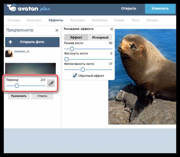 - Пройдите на страницу онлайн-сервиса AvatanPlus, а затем кликните по кнопке «Применить эффект» и выберите на компьютере изображение, с которым будет осуществляться дальнейшая работа.