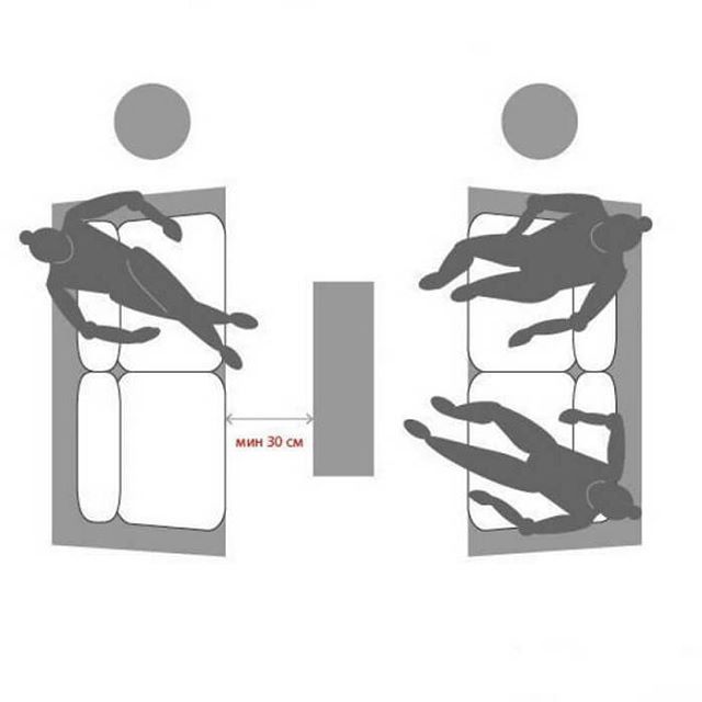 При установке двуспальной кровати по обеим сторонам от нее оставляйте широкий проход.