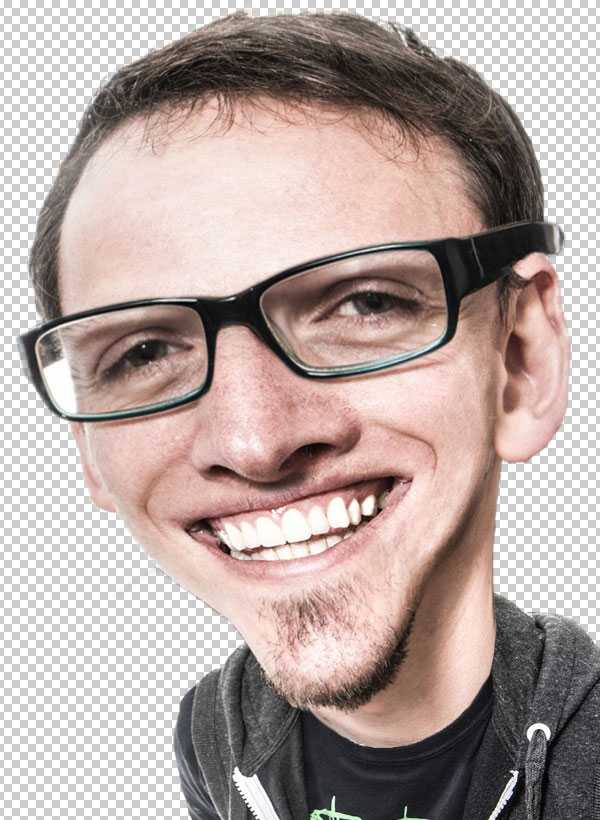 Самое важное в технике создания карикатуры – это найти элементы, которые уже, по своей природе, акцентированы, а затем преувеличить их до определённой степени комичности. В нашей исходной фотографии, линия челюсти молодого человека ярко выражена, и поэтому его улыбка сразу заметна. В глаза бросаются очки в роговой оправе, а также линия волос, которая, похоже, начинает отступать. Это все характерные черты, над которыми мы можем подшутить.