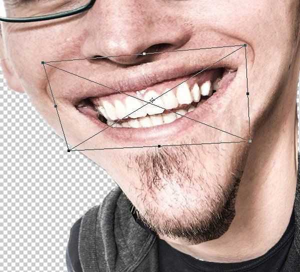 Сделайте большую ухмылку ещё больше, путём растягивания изображения рта.