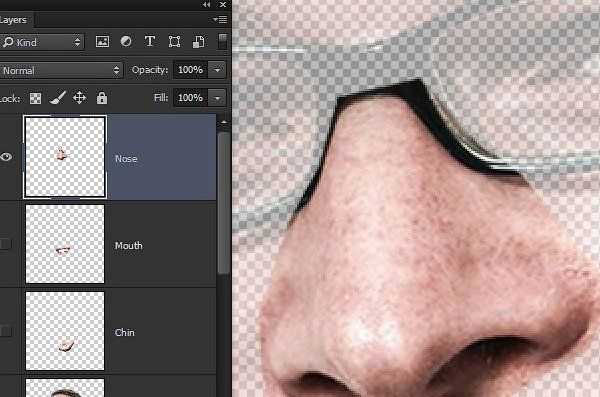 Вырежем подбородок и поместим его на новом слое.