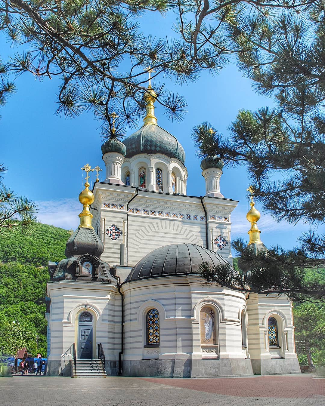 Отсюда можно увидеть весь Форос. Поэтому еще одно название достопримечательности — «парящая в облаках» церковь. Построили комплекс в византийском стиле, везде можно увидеть большое количество опорных столбов и прекрасных куполов. Напольную мозаику заказывали в Италии, а внутри церковь расписывали русские художники. За все время своего существования церковь не раз реставрировали, поэтому она остается необычной и красивой на протяжении всего времени. По воскресеньям в храме проводятся богослужения.