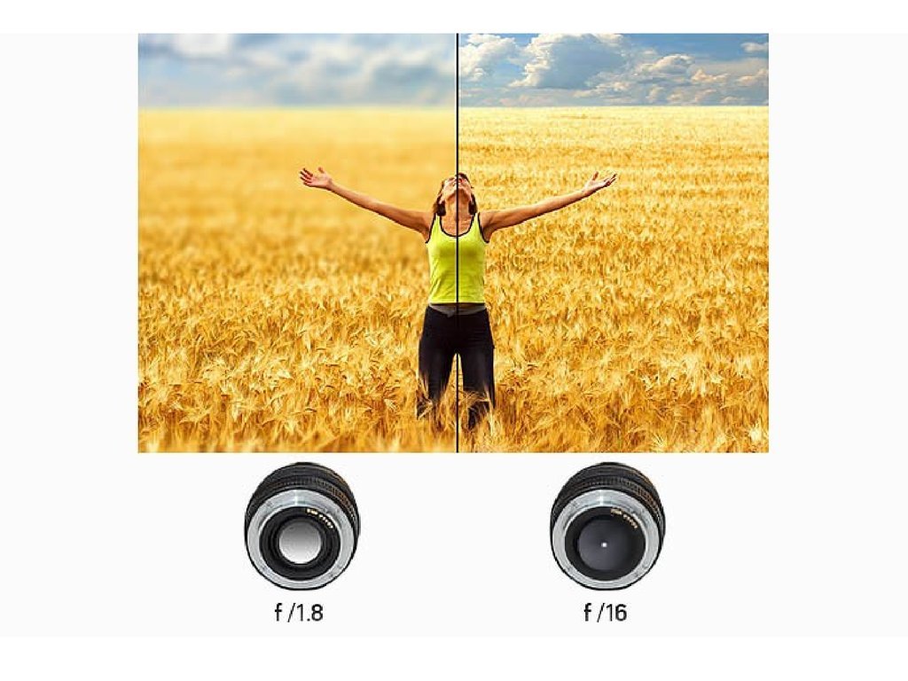 - Прокрутите влево, чтобы найти свою апертуру вверху