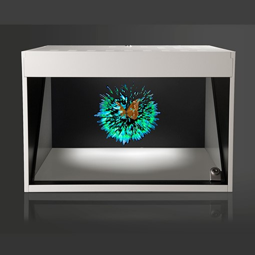А объединение японских учёных уже долгое время работает над созданием лазерной проекционной технологии Aerial 3D. Они отказались от традиционного плоского экрана, рисуя объекты в трёхмерном пространстве с помощью лазерных лучей. Aerial 3D использует эффект возбуждения атомов кислорода и азота фокусированными лазерными лучами. В данный момент система способна проецировать объекты, состоящие из 50 000 точек с частотой до 15 кадров в секунду.