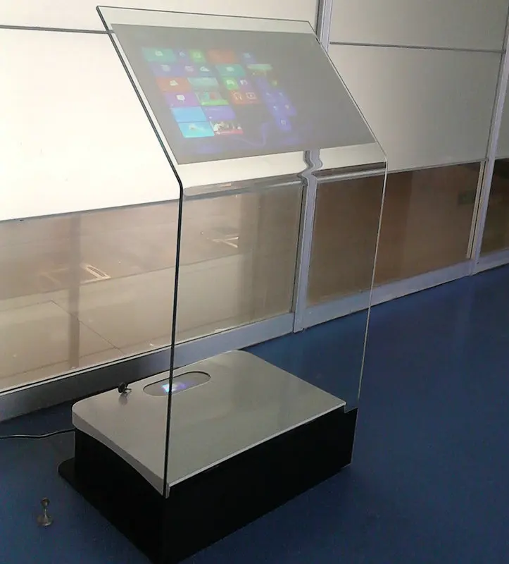 Сам проектор, проецирующий изображение, может оставаться вне поля зрения зрителя. К несомненным достоинствам подобных решений также стоит отнести хорошие углы обзора (близкие к 180 градусам), высокую контрастность картинки и возможность создавать голографические экраны большого размера или определенной геометрической формы. Естественно, дисплеи на полупрозрачной пленке используются, прежде всего, для придания помещениям определенного шарма и необычного эффекта, оформления торговых пространств и телевизионных студий. Решения с прозрачными панелями разрабатываются многими компаниями и, в первую очередь, они используются для целей маркетинга и рекламы, чтобы произвести впечатление на потребителей.