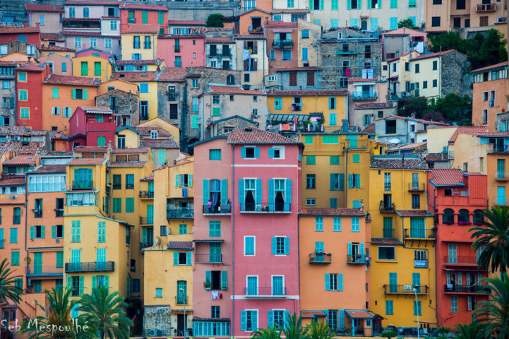 Город Ментона во ФранцииМягкий ласкающий климат, море, много зелени и солнце 365 дней в году – это всё об этом городке во Франции. Не удивительно, что дома в этом городе-курорте принято красить в жизнерадостные цвета. Не по теме, но всё-таки – в Ментоне самая высокая продолжительность жизни во Франции. Может быть из-за красоты и яркости;) Туристы, описывая город, часто называют его цветочно-лимонно-солнечным.