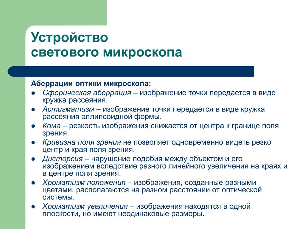 аберрации оптических систем (англ. optical aberrations) — ошибки или погрешности изображения в оптической системе, вызываемые отклонением луча от того направления, по которому он должен был бы идти в идеальной оптической системе.
