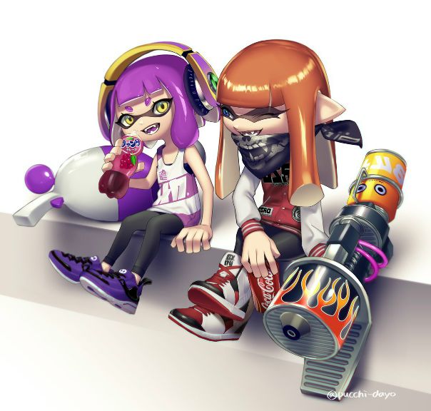 Inklings are protagonists from the Splatoon series who also make some appearances in crossover games. They are a race of humanoids that can turn into squids, the color of which is based on their hair/tentacle color. Inklings live in Inkopolis, where they participate in Turf Wars in which they attempt to claim as much area as possible by covering it with their ink, along with other sports and activities such as Splatfests and Salmon Run. They also speak in a made-up language known as the Inkling language.