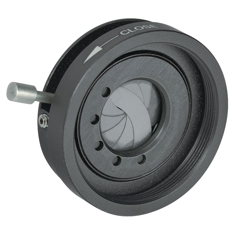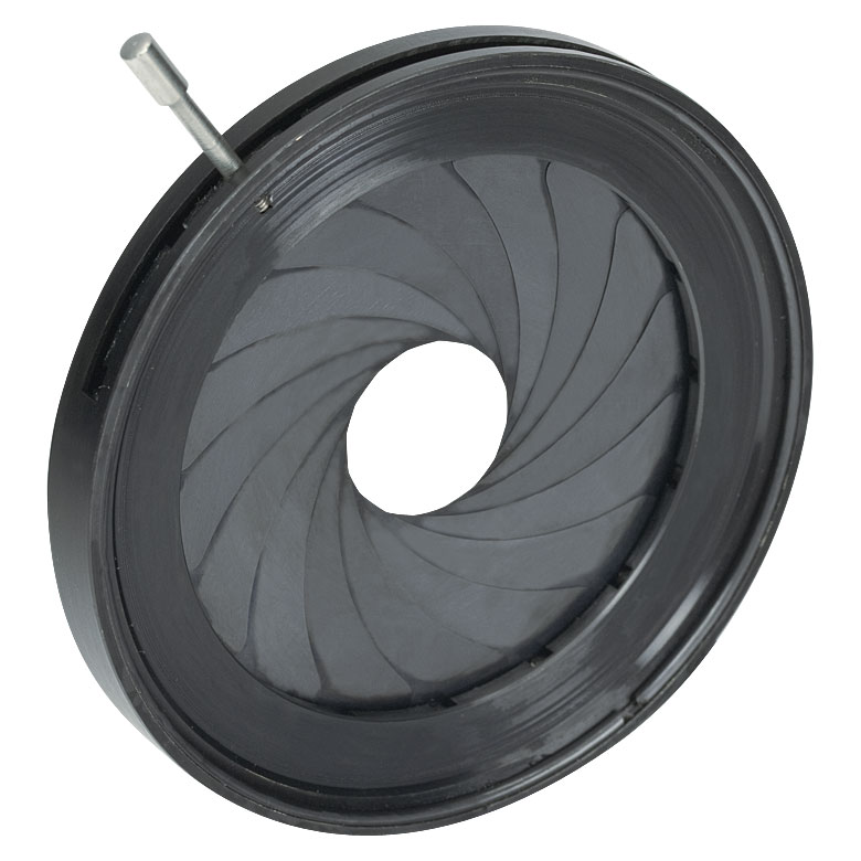 Ирисовая диафрагма может уменьшить количество света, попадающего на детектор, за счет уменьшения апертуры, обычно с помощью «листьев» или «лезвий», образующих круг.