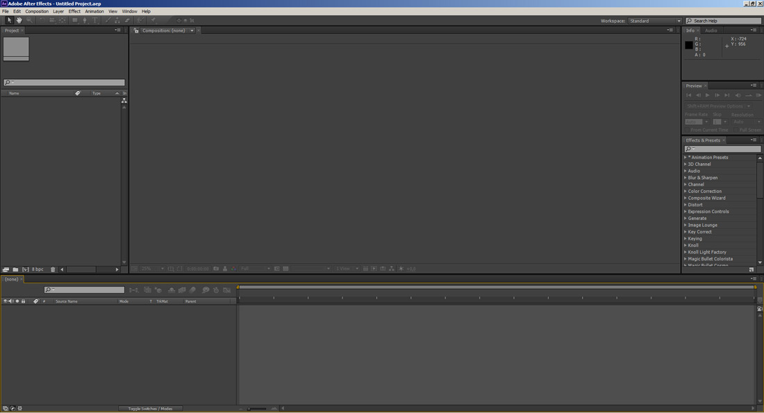 Активируйте пункт Шкала времени (Timeline) в меню Окно (Window), чтобы открыть редактор видео.