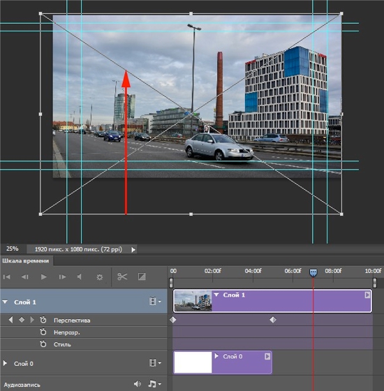 Поскольку в финальном видео мы будем перемещаться по кадру, нужно предоставить Photoshop пространство для маневров. Откройте меню Изображение (Image) и выберите Размер холста (Canvas Size). Появится окно, в котором будет показан текущий размер и способы его изменить. Скорее всего, по умолчанию пропорции будут указаны в дюймах, но я обычно устанавливаю пиксели. Нам нужно уменьшить размер холста примерно на 20%, чтобы вокруг него было место для смещения кадра. На примере ниже видно, что я экспортировал из Lightroom снимок, ширина которого равна 2400 пикселей. Размер холста был уменьшен до 1920 х 1080 пикселей. Это обеспечивает нам соотношение сторон 16:9, что идеально для просмотра на широкоэкранном ТВ или мониторе. Кликните ОК и заметите, что размер изображения на экране стал казаться меньше. Однако, сама фотография осталась прежней, мы всего лишь уменьшили участок просмотра (размер холста). Используя инструмент Перемещение (Move), вы можете смещать фотографию и увидеть, что слева, справа, сверху и снизу за чертой холста остались пиксели.
