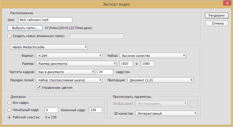 Откройте программу для интервальной съемки (параметры см. Ниже) и выберите исходную папку изображений.Установите частоту кадров 24 кадра в секунду, кодек h.264 и максимально высокое качество. Вы можете либо изменить размер видео, либо нет, но если вы выводите файлы JPEG с желаемым разрешением, вам не нужно беспокоиться об этой части. Нажмите «Кодировать» или «ОК» и подождите, пока обработается интервал времени. Это так просто.
