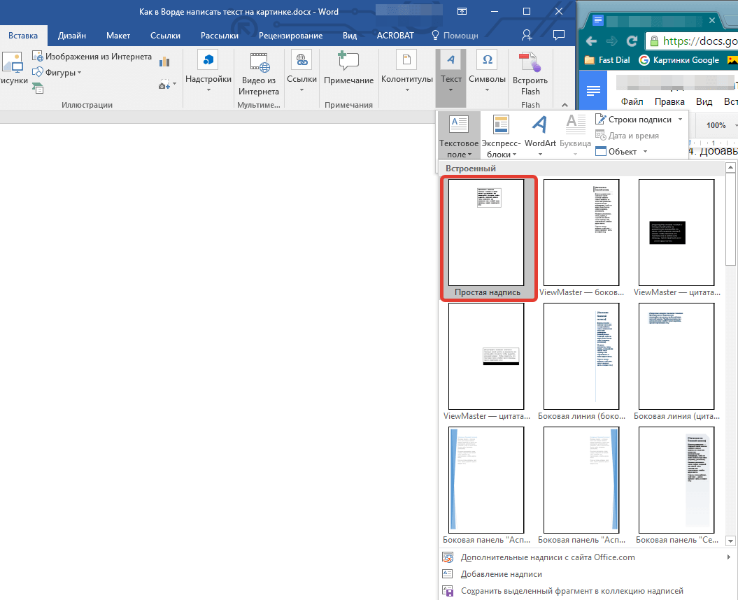 Можно также разместить текст справа от картинки в Microsoft Office Word в качестве содержимого текстового блока.