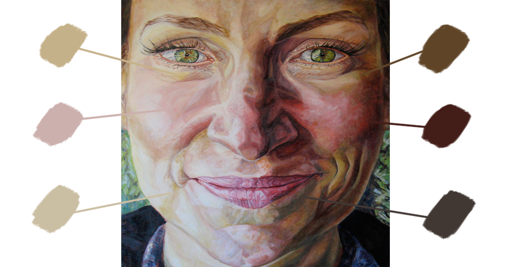 Холодные цвета часто примешиваются к теплым (коричневому, охре, желтому) для создания теней, иногда их можно даже использовать в чистом виде для контраста с теплыми фрагментами. Для того чтобы верней написать кожу, стоит внимательно приглядываться к лицу человека, фотографии или рисунку, с которого вы пишете.
