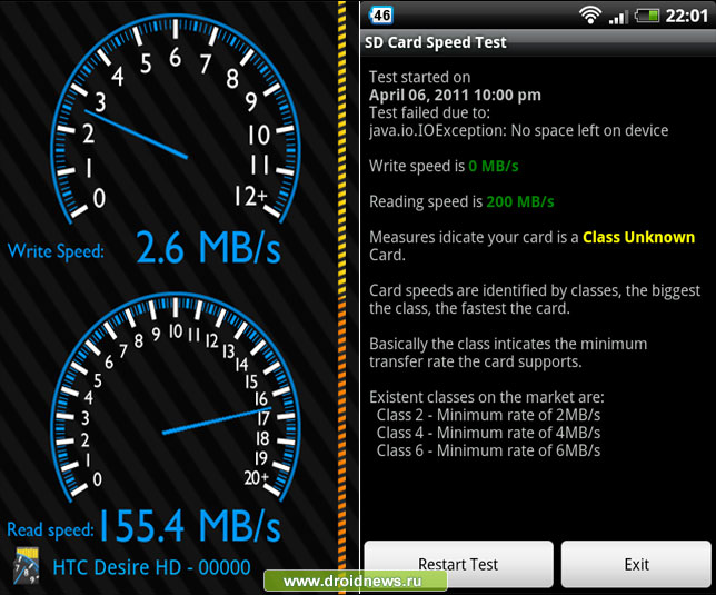 Android-приложения проверяют скорость SD-карты (чтение / запись)