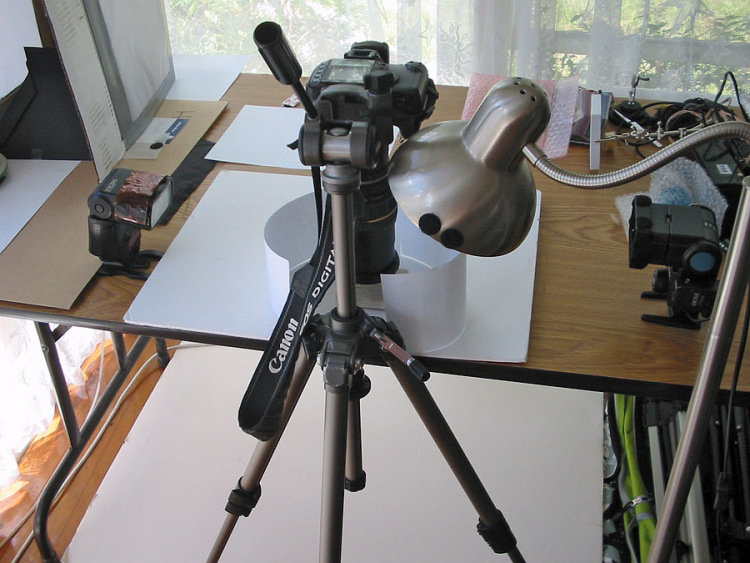Для базовой настройки поместите камеру на штатив, установите минимальное расстояние фокусировки и поместите объект на книгу наверху стола (возможно, с листом над книгой, чтобы создать простой фон).