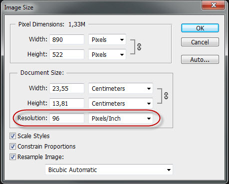 Таким образом, при создании нового документа или изменении размера изображения мы могли бы установить ширину и высоту в пикселях равными 1800x1200px.
