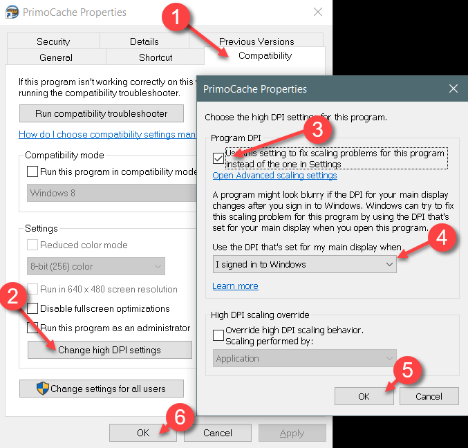 К счастью, Microsoft делает все больше и больше шагов, чтобы предоставить решение как часть операционной системы Microsoft Windows . Если у вас Windows 10 с последними обновлениями, вы можете решить проблему с высоким разрешением, изменив параметры совместимости приложения Intuit ProFile.