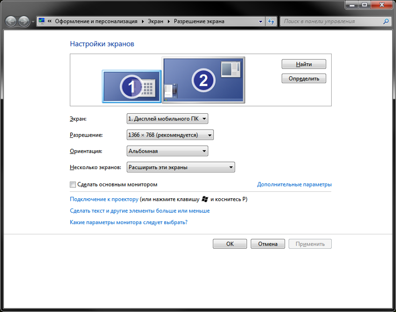 , максимальное доступное разрешение экрана будет самым низким разрешением, поддерживаемым одним из мониторов. Например, если монитор 1 поддерживает разрешение 1920 x 1080, а монитор 2 поддерживает разрешение 2560 x 1440, максимальное разрешение, поддерживаемое обоими мониторами в режимеDuplicate (Дублировать)