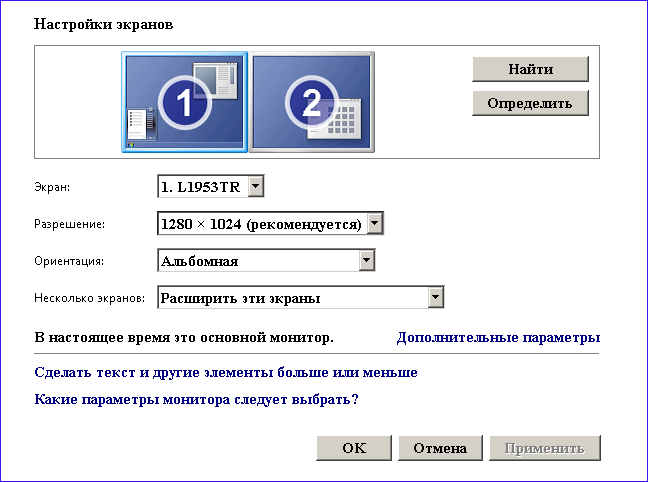 , максимальное разрешение экрана можно установить отдельно для каждого монитора. - Если режим отображения установлен на