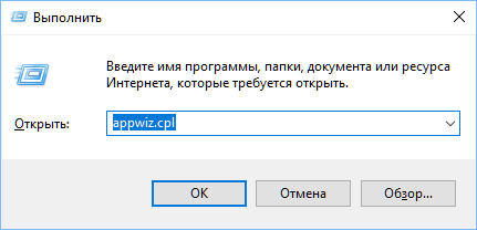 В отобразившемся блоке наберите appwiz.cpl, кликните на кнопку «ОК».